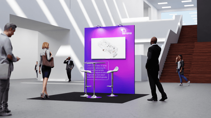 Inköp 9kvm mässmatta inkl. dubbelhäftande tejp Tygprint, polyester, inkl. gummilist 1948x2480mm Hyrmaterial 2st beMatrix systemramar 992x2480mm inkl. beslag 2st beMatrix basplate 25kg/st 2st SAM-LED lights inkl. fästen och elkablage 1st ståbord, vit toppskiva, kromad fot 2st barstol vit sits, kromad fot 1st 55" signage skärm inkl. mediaspelare och väggförstärkning Övrigt Montering, demontering OBS! FRAKT TUR OCH RETUR TILL EVENT UTANFÖR STOCKHOLM TILLKOMMER FRAKTKOSTNAD MED 1900:-